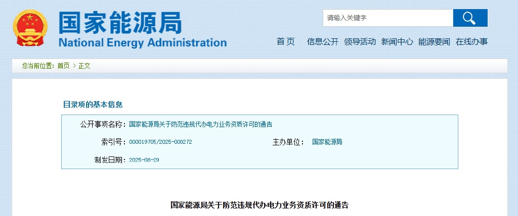 国家能源局关于防范违规代办电力业务资质许可的通告