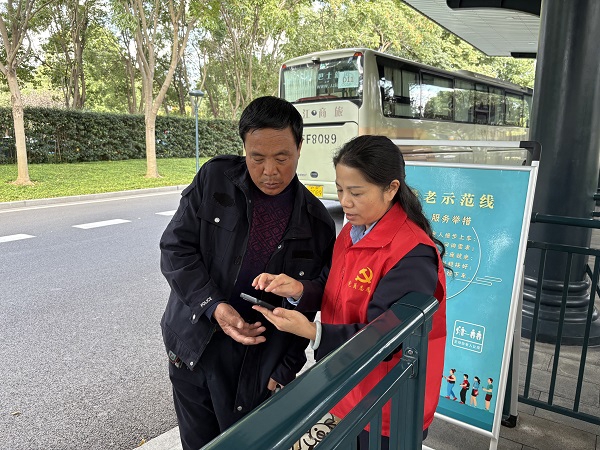 志愿者们通过现场讲解、实物演示等方式,向老年乘客普及安全乘车知识,包括上下车注意事项、无障碍设施使用方法等,耐心解答换乘咨询、特殊需求等问题。看到携带重物或行动不便的老人,志愿者立刻上前践行“等、说、帮”服务——多等一会儿、主动问候、上前搀扶。这些细微举动,驱散了老人出行的顾虑。