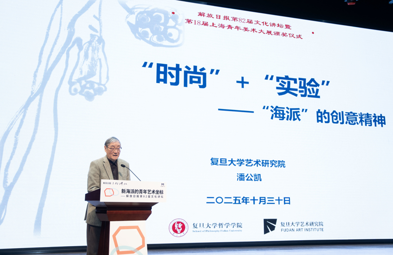2025年10月30日下午,解放日报第82届文化讲坛在上海世博会博物馆举行。著名艺术家、美术理论家、复旦大学艺术研究院院长潘公凯 孟雨涵 摄
