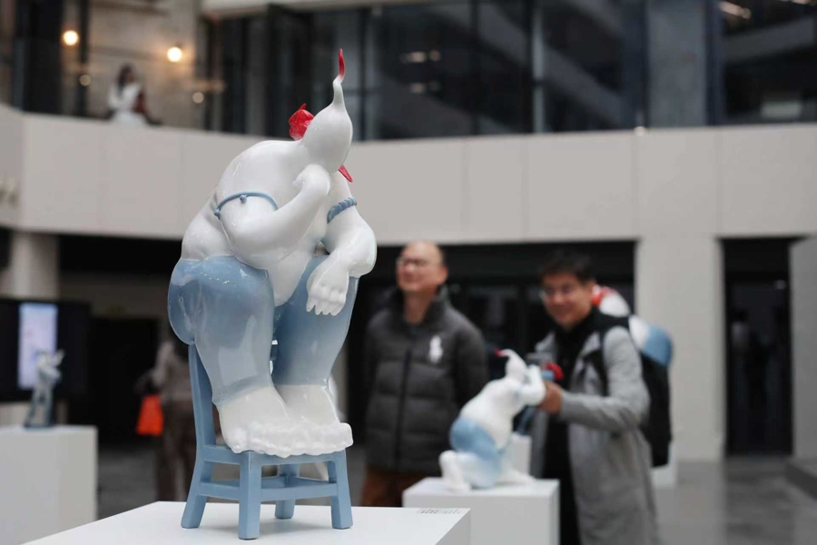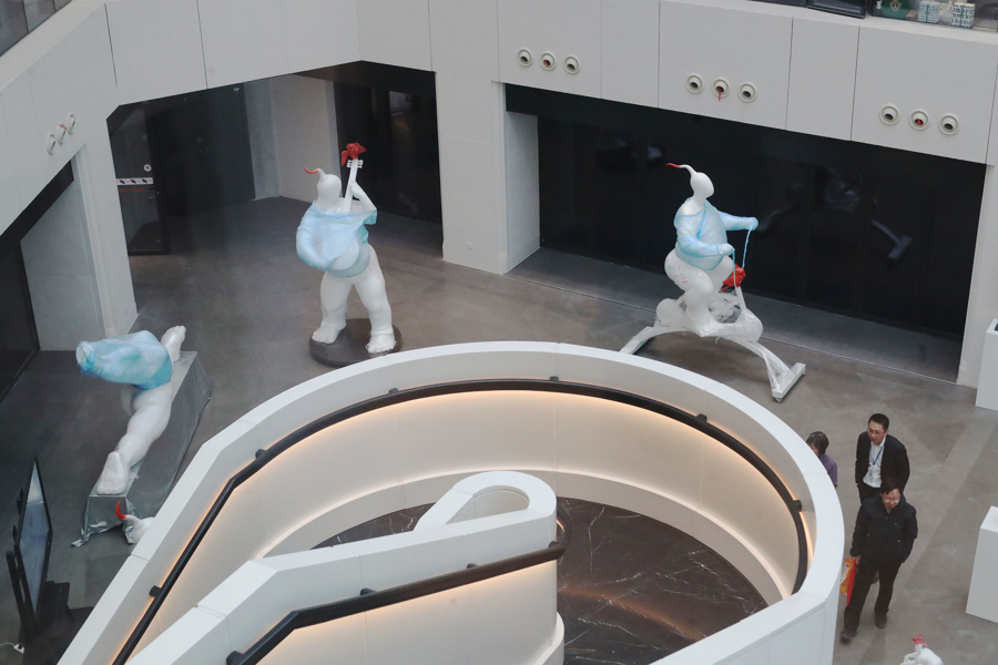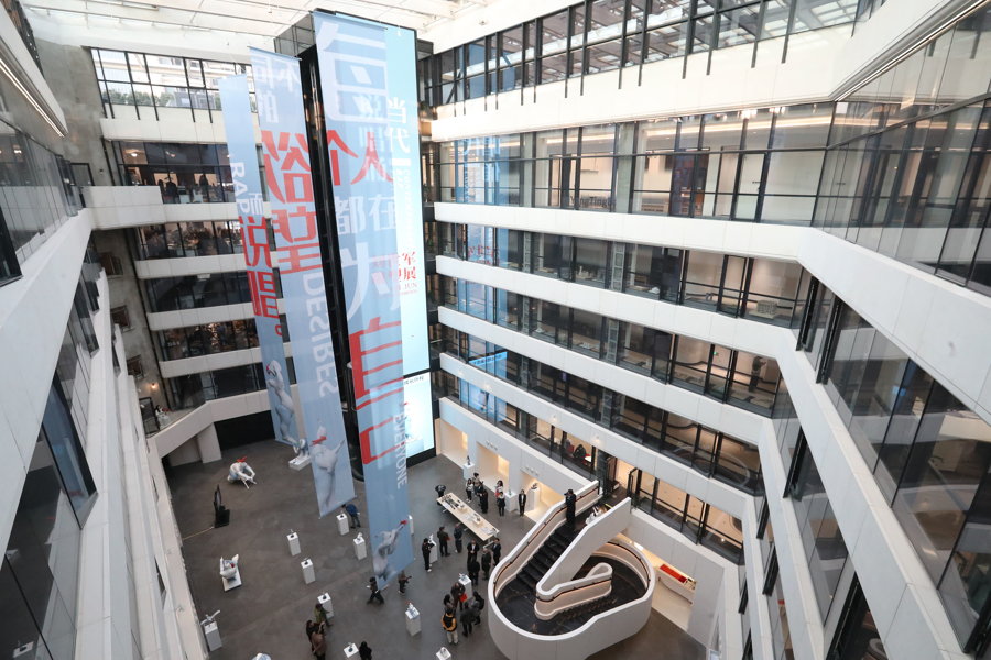策展人、德邻公寓修缮总负责人余志峰认为:“当他的青铜说唱俑伫立于公寓的玻璃天棚下,两种材质(混凝土与金属)、两种时间(1935与2025)、两种语言(建筑与雕塑)在此并置——这不是简单的陈列,而是一场以空间为媒介的创造性转译。”通过这场跨越时空的雕塑对话,德邻公寓正转型为北外滩乃至上海的文化新客厅,成为北外滩文化版图上最亮眼的标识之一。