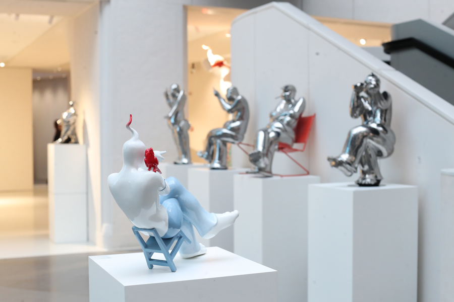记者注意到,“当代说唱俑——刘世军雕塑展”作为上海德邻1935艺术空间正式启幕的首展,蕴含深刻的文脉思考。艺术家刘世军以雕塑作品探讨当代社会的多元与复杂,其“当代说唱俑”系列拂去面部五官信息,不指向任何一个人,却折射出当代人的共性心理状态。
