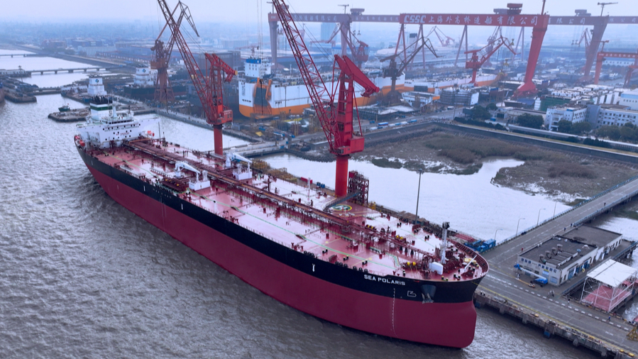 12月1日,中国船船集团旗下上海外高桥造船有限公司为挪威Frontline公司建造的15.8万吨苏伊士型原油轮“SEA POLARIS(海洋北极星)”轮签字交付,为公司全年交船任务画上了圆满句号。至此,2025年公司顺利交付29艘船舶,累计270.65万载重吨,以超额完成7艘的优异成绩交出了一份亮眼的答卷。交付船型涵盖11.4万吨阿芙拉型成品油轮19艘(含1艘全球首艘风帆助推型)、15.8万吨苏伊士型原油轮2艘、汽车运输船(PCTC)7艘,以及7000TEU集装箱船1艘。
