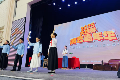 “2025年大世界演艺嘉年华——沉浸式儿童朗诵剧《宋庆龄》”日前在上海大世界中庭大舞台上演。该剧以大型交响合唱史诗《宋庆龄》为蓝本,精心撷取宋庆龄人生中的重要历史时刻,来自上海寻声艺术团的小演员们通过朗诵和话剧表演相结合的形式,为现场观众带来一场别开生面的文化体验,并吸引众多亲子家庭前来观看。