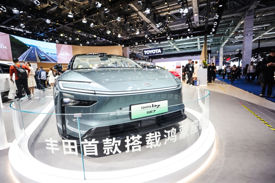 丰田全新D级轿车铂智7首次亮相,搭载鸿蒙座舱系统 (本报记者 袁婧摄)