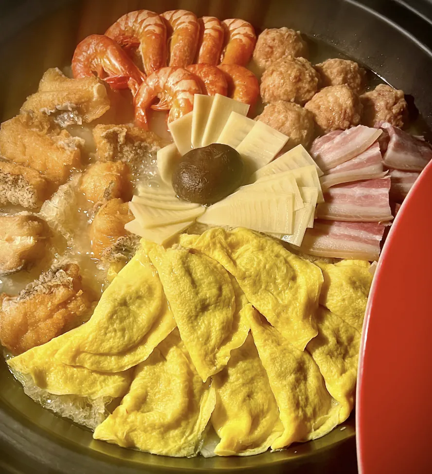 提名最多的美食来了!天冷了上海人日常饭桌上的“压轴大菜”!——全家福暖锅 里面有肉丸、鱼丸、蛋饺肉皮、黄芽菜再来点细细的粉丝~考究一点还会再加两块熏鱼或者虾干就这么暖烘烘地端上桌氛围立马不一样啦!